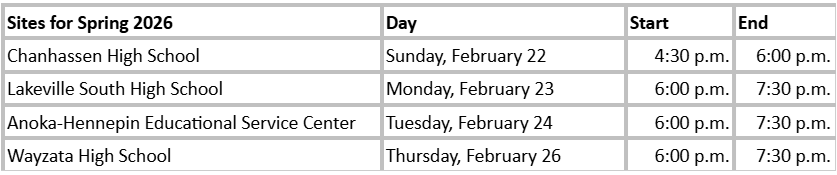 This is a great opportunity for students and their families to visit with representatives and explore a variety of options for continued education beyond high school. It is also a great learning tool for career exploration. Click here to see schools attending the Spring 2026 Minnesota Education Fairs.